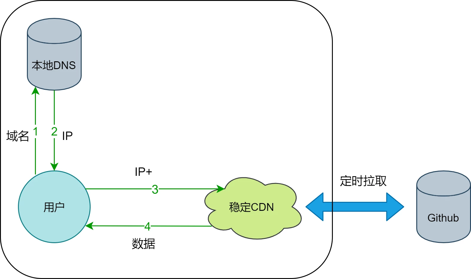 改成:用户->DNS(国内)->自定CDN(CF)->Github